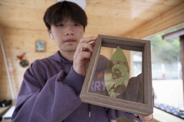 金山鹿苑景区的树叶雕刻产品