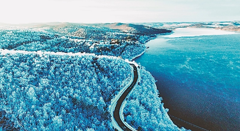 林口县雾凇谷位于莲花镇莲花电站大坝下游。莲花电站因间歇性发电,使下游江面冬季形成百里不封冻的特殊状态,也自然造化出冬季的百里雾凇奇观。图片由林口县委宣传部提供