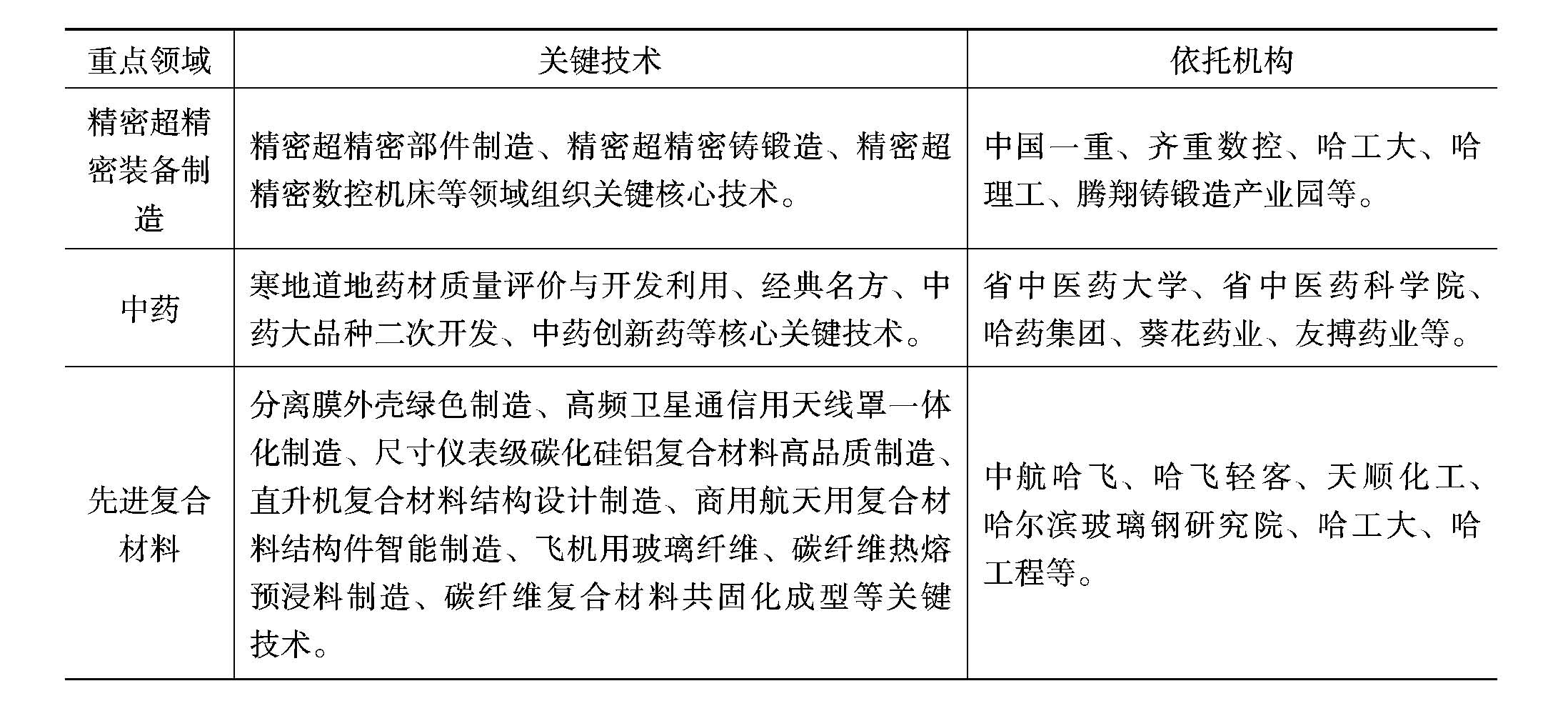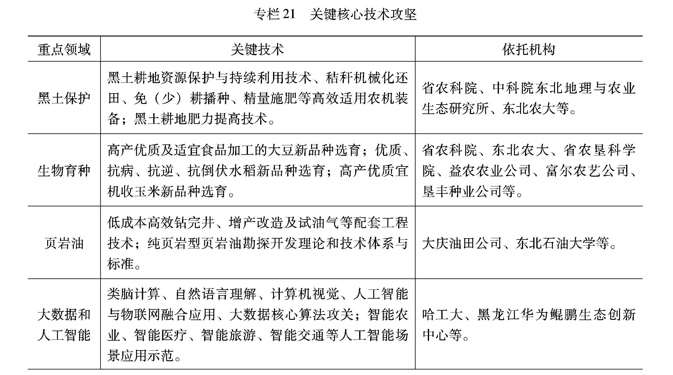 发挥科教资源优势和院士引领作用,围绕“百千万”工程和重点产业链,加快突破一批关键核心技术,努力打造东北科技创新策源地。积极对接国家重大战略,在人工智能、空天科技、航空发动机及燃气轮机、极地科学、页岩油开发利用、传感器、精密超精密加工、大数据算法和技术开发等领域组织开展联合攻关,抢占科技前沿制高点。在高端装备、生物疫苗、生物菌种、生物育种、生态保育、能源、新材料等重点领域组织实施一批重大科技计划项目,创造属于黑龙江的独门绝技,强化对重点产业的引领和支撑作用。围绕社会关切,在重大疾病防控、生物医药、污染防治、食品安全、公共安全等民生领域加强科技创新,让创新成果惠及人民群众。