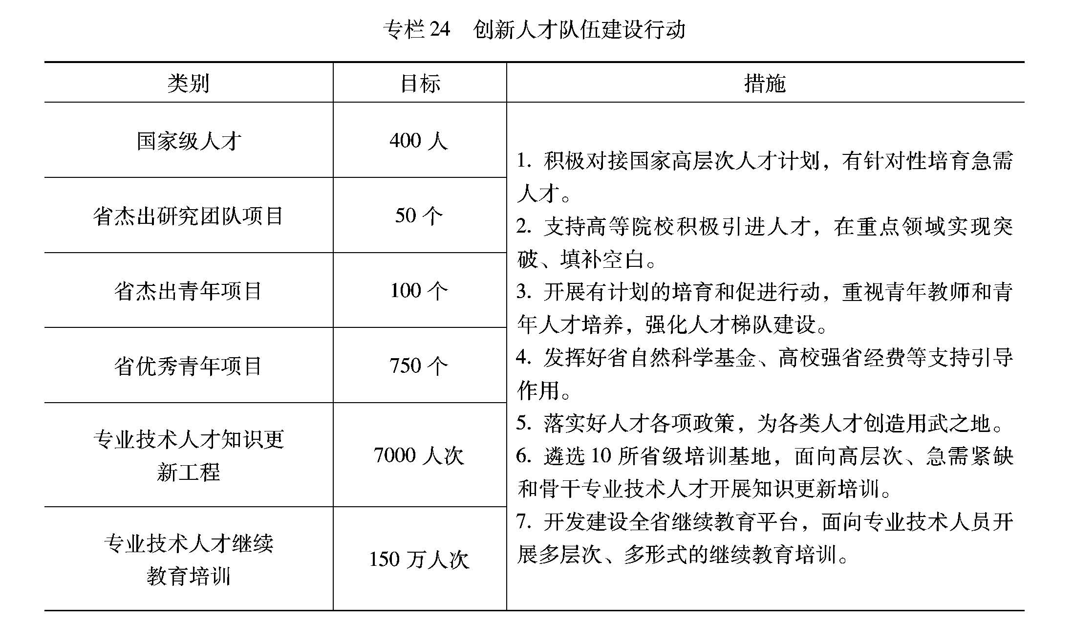 落实国家战略性科学计划和科学工程,推进科研院所、高校科研力量优化配置和资源共享,加强原始创新、集成创新、引进消化吸收再创新,强化战略科技力量。瞄准科技前沿和未来产业发展,实施基础研究“突破工程”,支持重点高校、科研院所和创新型企业加强前沿基础理论研究布局,实现前瞻性基础研究、引领性原创成果重大突破。强化企业创新主体地位,促进各类创新要素向企业集聚,落实研发费用加计扣除、高新技术企业税收优惠等普惠性政策,实施重大技术装备保险补偿机制,激励企业加大研发投入,增加企业创新动力。实施创新型企业提升工程,引导各类主体创办科技型企业、科技人员领办企业,推动产业链上中下游、大中小企业融通创新,支持创新型中小企业成长为技术创新重要发源地。到2025年,全省研究与试验发展经费支出占地区生产总值比重达到2.5%。