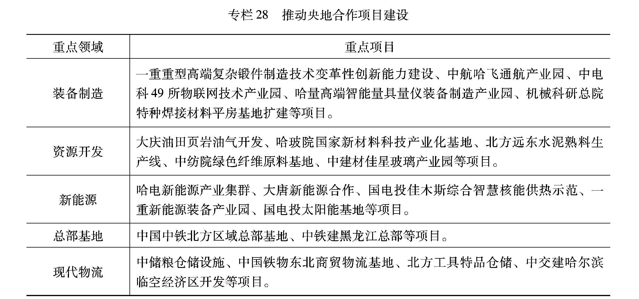 推动驻省央企与地方融合发展。合力推动央企在我省开展各类改革试点,积极探索央企与地方国有企业交叉持股等股权多元化改革模式。支持驻省央企开展独立法人改革,推动大庆油田等成立二级子公司。建立央企与地方合作机制,携手发展配套产业链供应链,共建产业园区,形成产业集群。