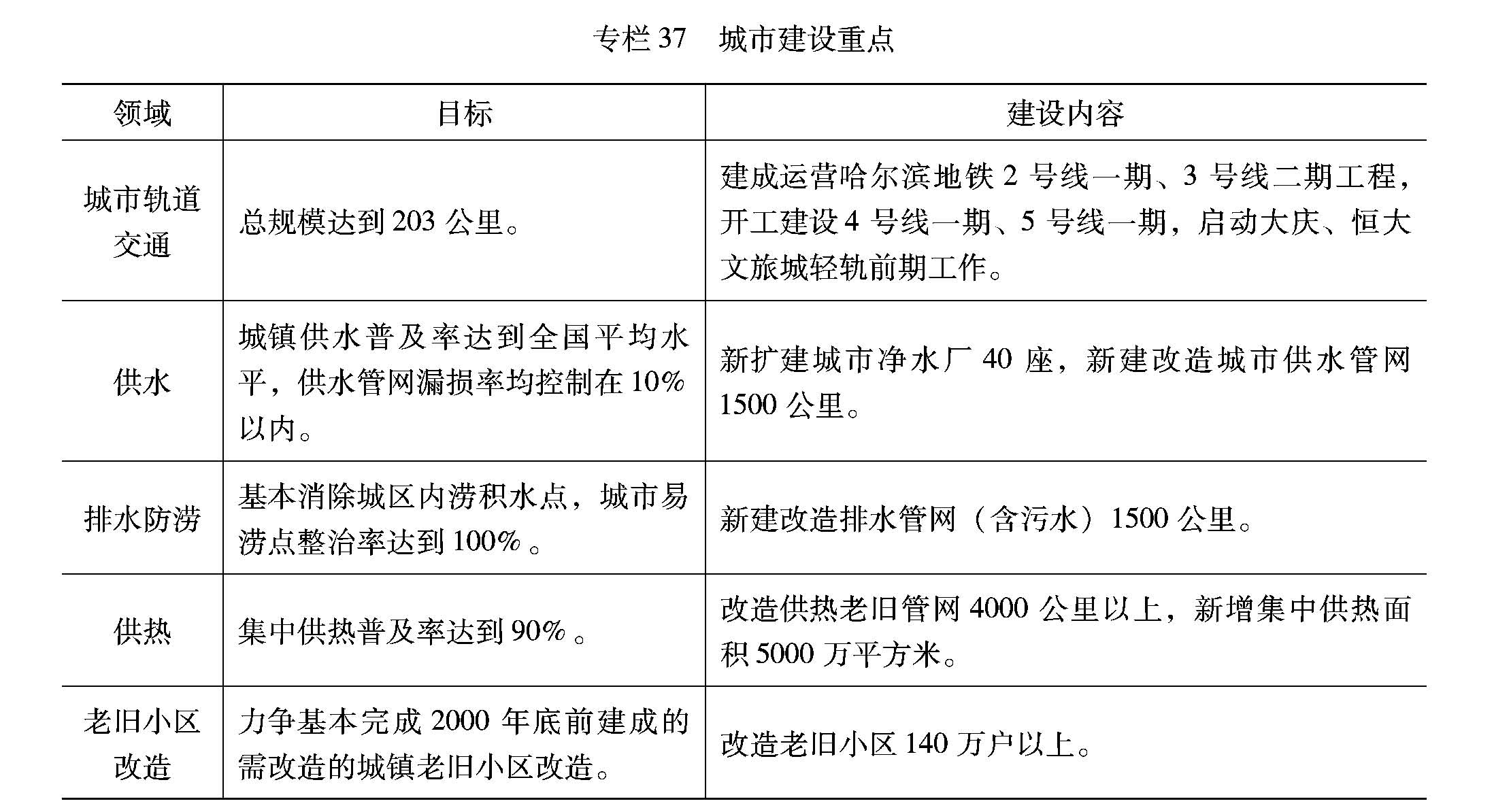 实施新型城镇化战略,提高中心城市综合承载和资源优化配置能力,促进大中小城市和小城镇协调发展,提升新型城镇化质量和水平。加强城市规划、建设全周期管理,合理安排生产、生活、生态空间,增强历史文化魅力,塑造城市风貌,体现时代特色,提升城市功能品质和治理能力,建设宜居城市、绿色城市、人文城市。实施城市更新行动,加快旧城和老旧小区改造、重点区域棚户区改造、市政管网更新、城镇路网升级、停车场建设。加强城市应急和备用水源建设,逐步实现县级以上城市具备两个以上水系相对独立的饮用水源。增强城市防洪排涝能力,全部消除城市严重易涝积水路段,建设海绵城市、韧性城市。加强以县城为重要载体的新型城镇化建设,加快县城城镇化补短板强弱项,推进肇东、五常、穆棱国家县城新型城镇化建设示范。开展智慧城市试点,实施感知龙江工程,推进“城市大脑”建设。促进农业转移人口市民化,按照常住人口规模配置公共资源。保障进城落户农民土地承包权、宅基地使用权、集体收益分配权,鼓励依法自愿有偿转让。树立以人为本、服务为先理念,提升城市社会治理水平。坚持房住不炒,多措并举促进房地产市场平稳健康发展。有效增加保障性住房供给,扩大保障性租赁住房供给,完善长租房政策,规范发展长租房市场。