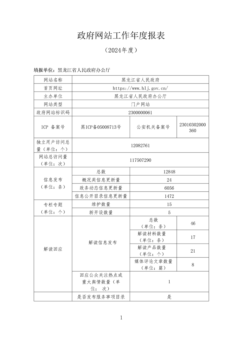 黑龙江省人民政府网站工作年度报表(2024年度)