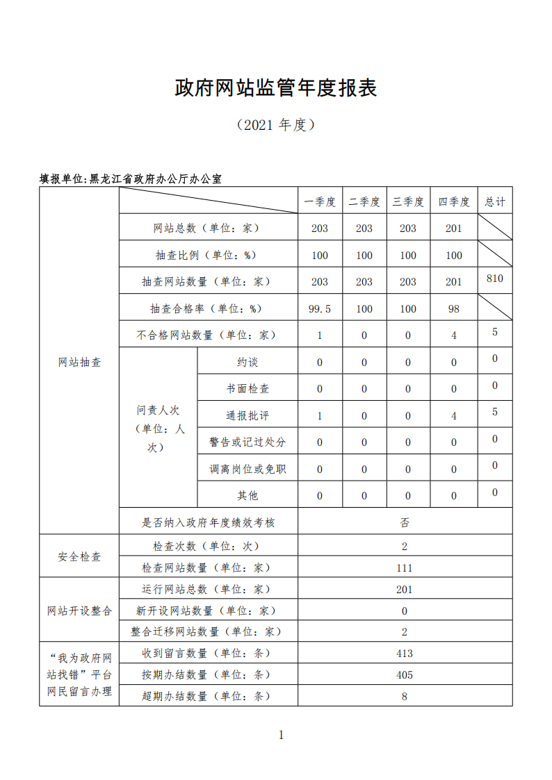 黑龙江省人民政府网站监管年度报表(2021年度)