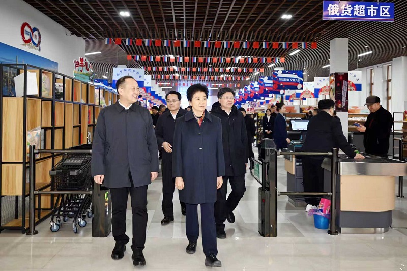 在东宁市,梁惠玲实地考察森鼎食用菌有限公司智能化菌包生产项目、智慧口岸改造项目,强调要大力发展口岸经济,加快提升口岸通关效能,引进培育外贸经营主体,打造跨境产业链和产业集聚带,推动口岸经济由“通道经济”向多元化“产业经济”转型。