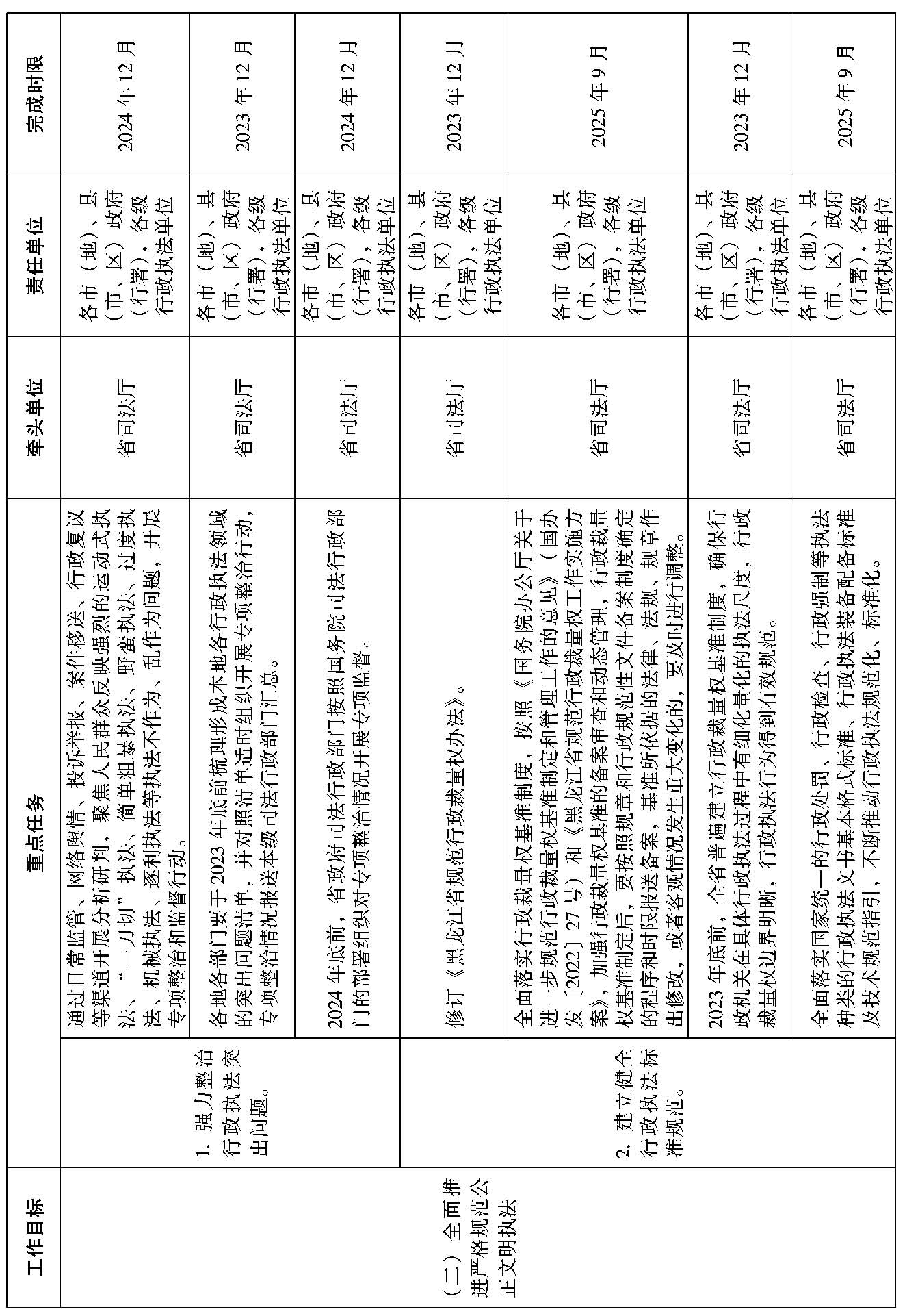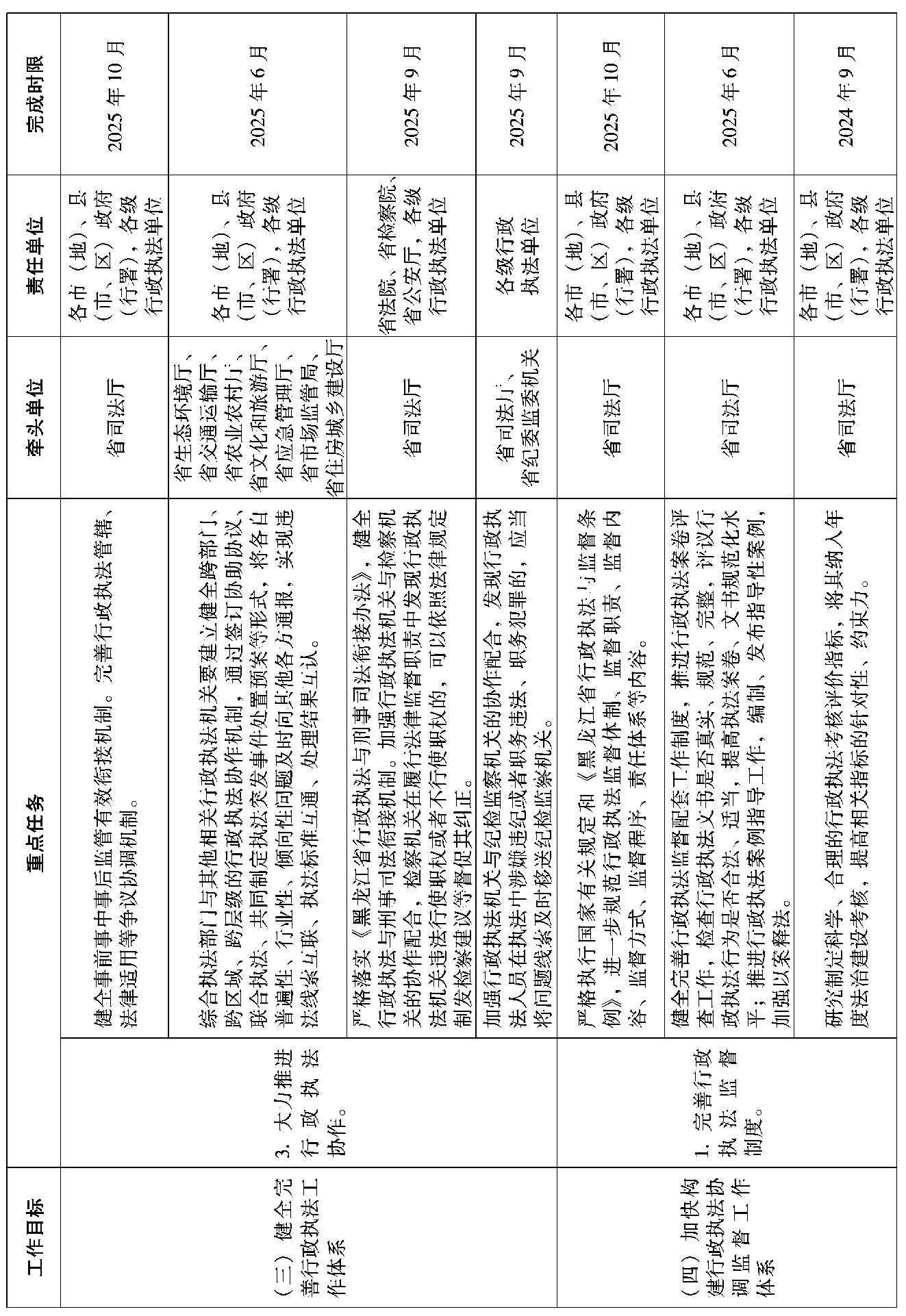 附件:黑龙江省落实《提升行政执法质量三年行动计划(2023—2025年)》任务分工清单